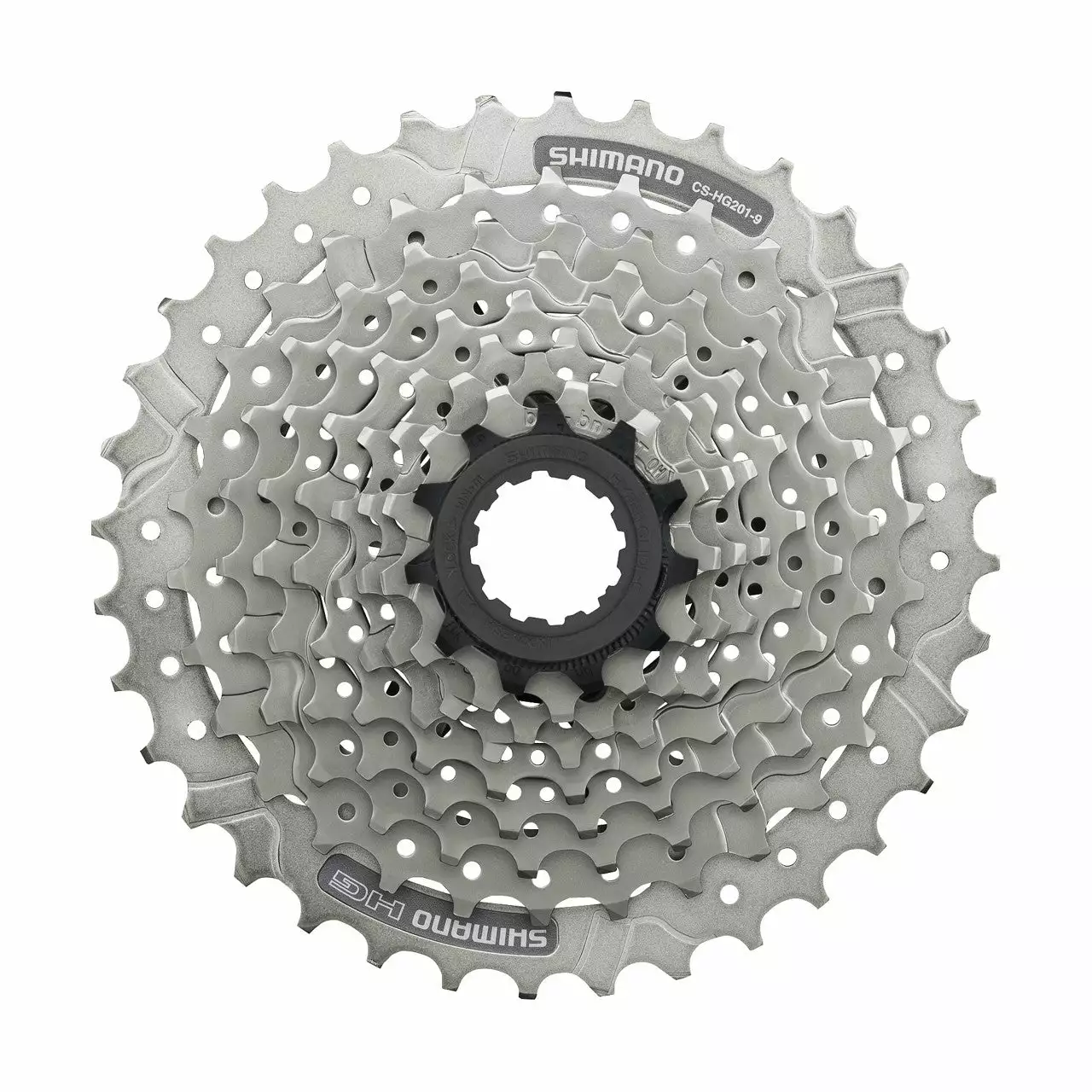 9-vaihteisiin maastopyörien voimansiirtoihin täydellinen HG201-9-kassettipakka on varustettu HYPERGLIDE-vaihtoteknologialla ja hopeisella viimeistelyllä.